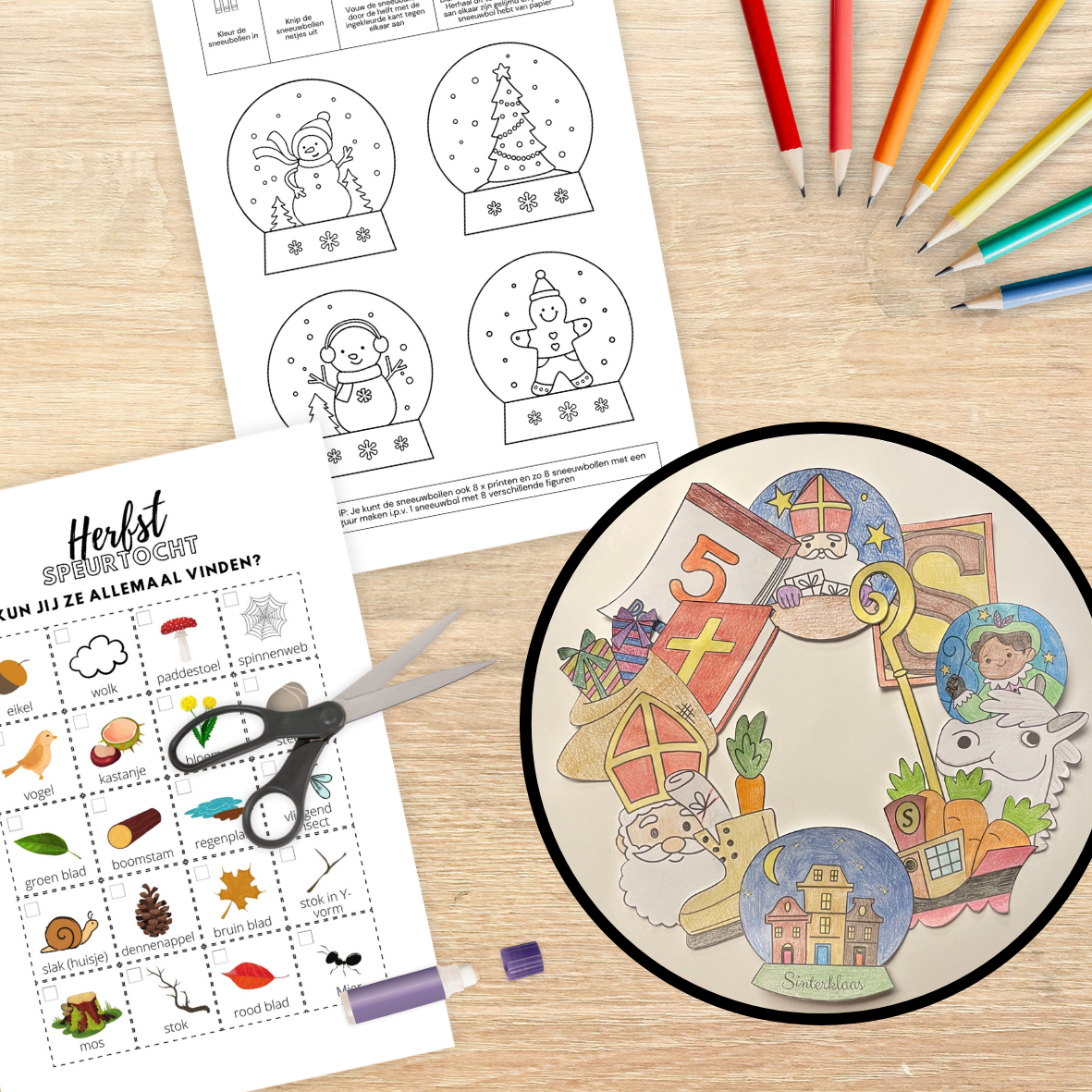 Winter & Kerstvakantie Kids Activiteiten Bundel, 28+ Printables voor Kleurplezier, Knutselen, Spelletjes & Maskers (A4 | Direct Printen)
