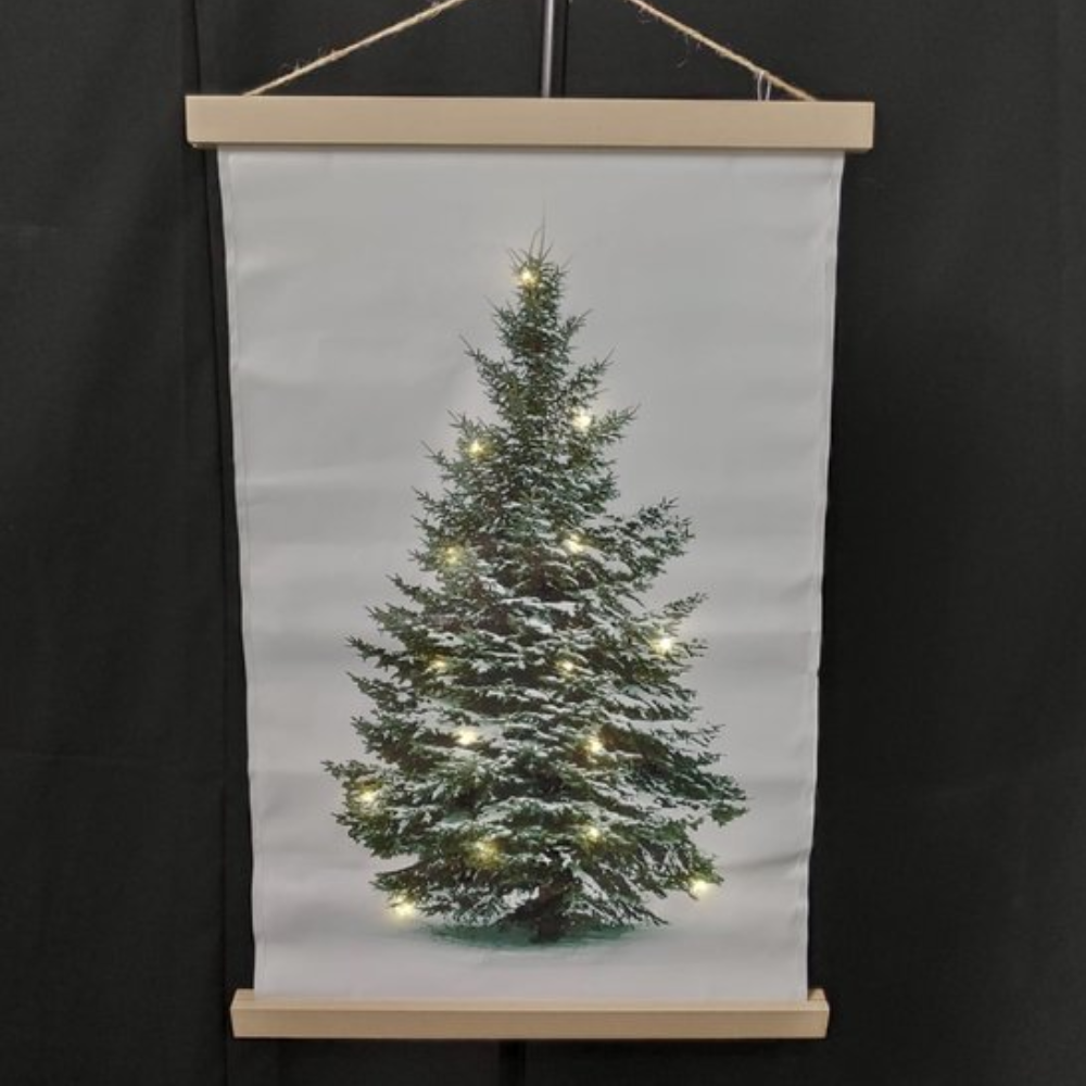 Geen zin of plek voor een grote kerstboom, kies dan voor een kerstboom wanddoek met led verlichting