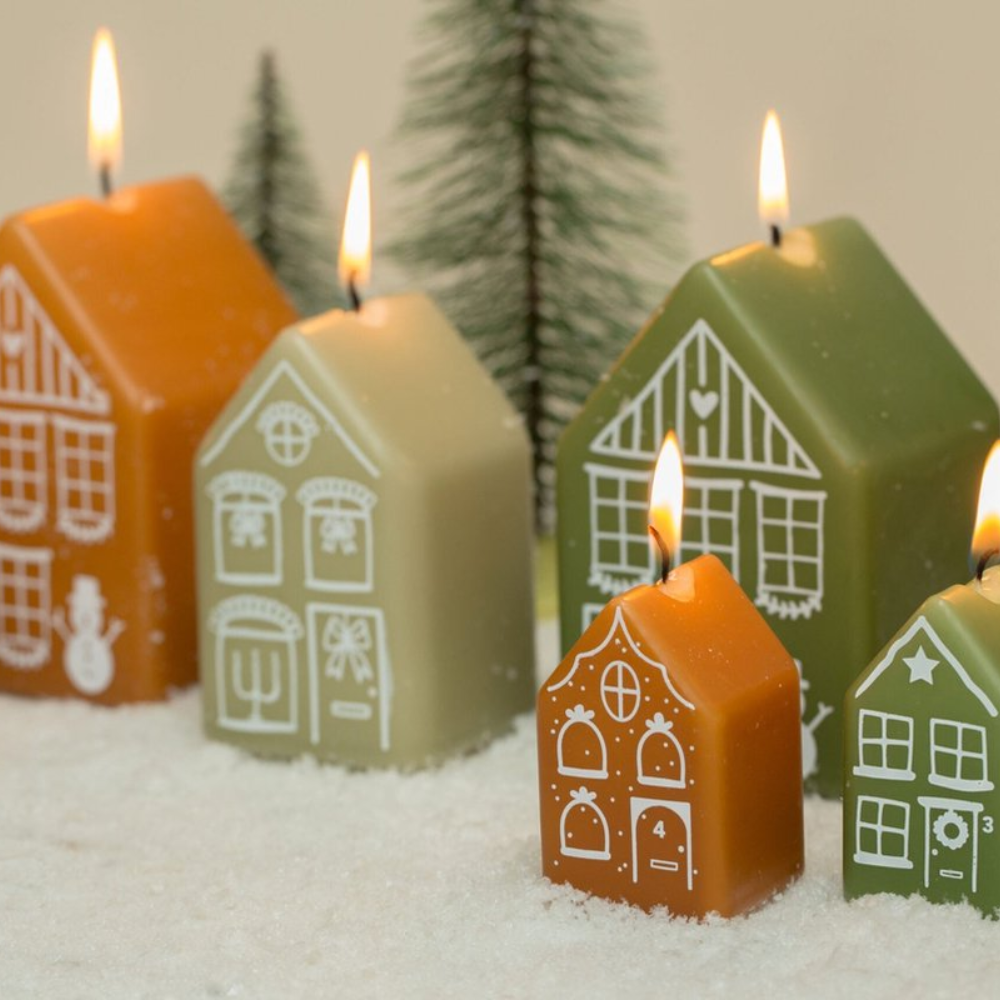Eigenlijk zonde om op te branden deze mooie advent kaarsen in de vorm van schattige huisjes.