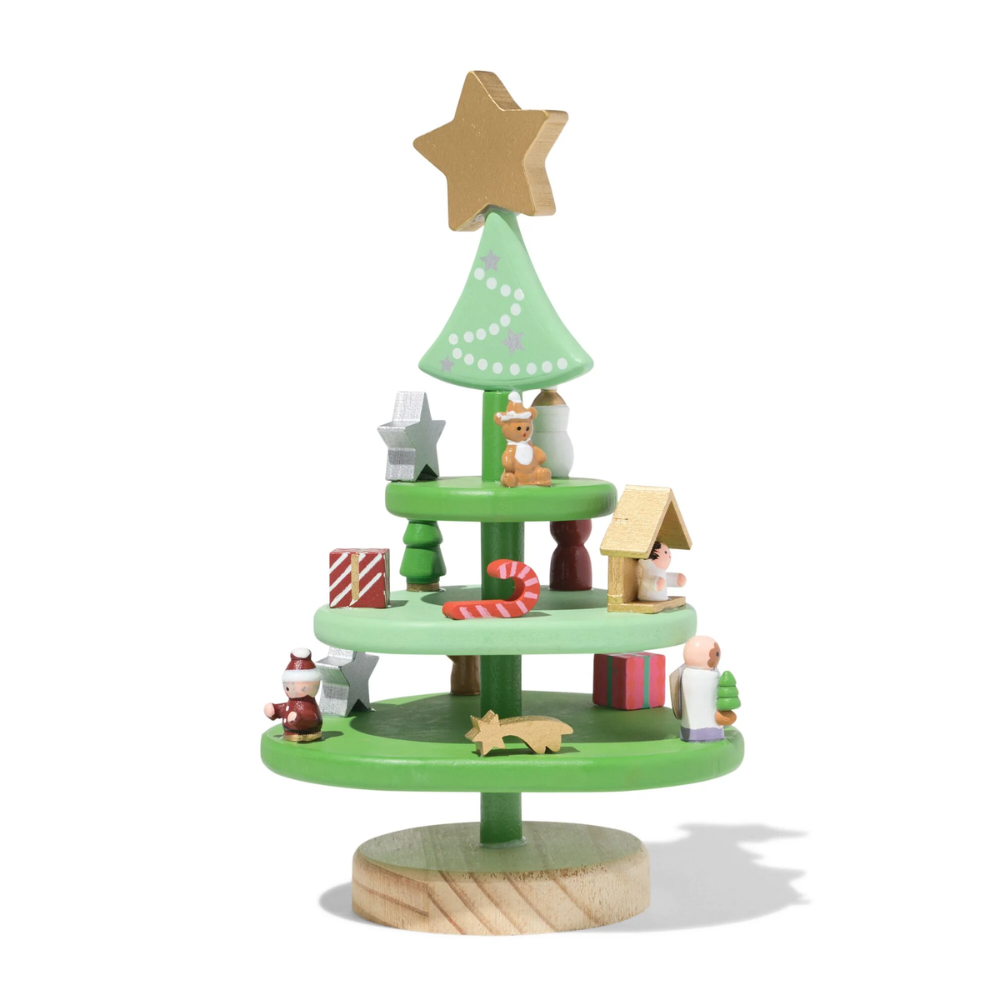 Dit houten kerstboompje staat geweldig in de vensterbank of in de kinderhoek